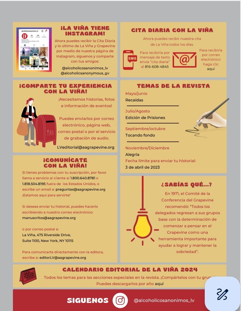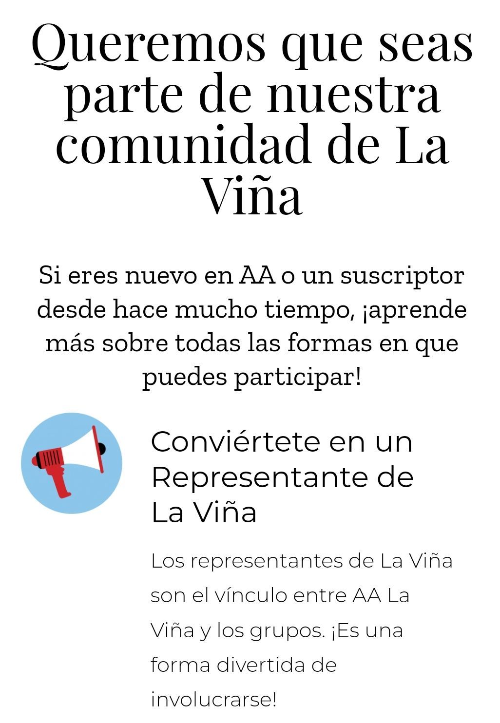 La Viña representatives are the link between AA La Viña and the groups. It's a fun way to get involved!